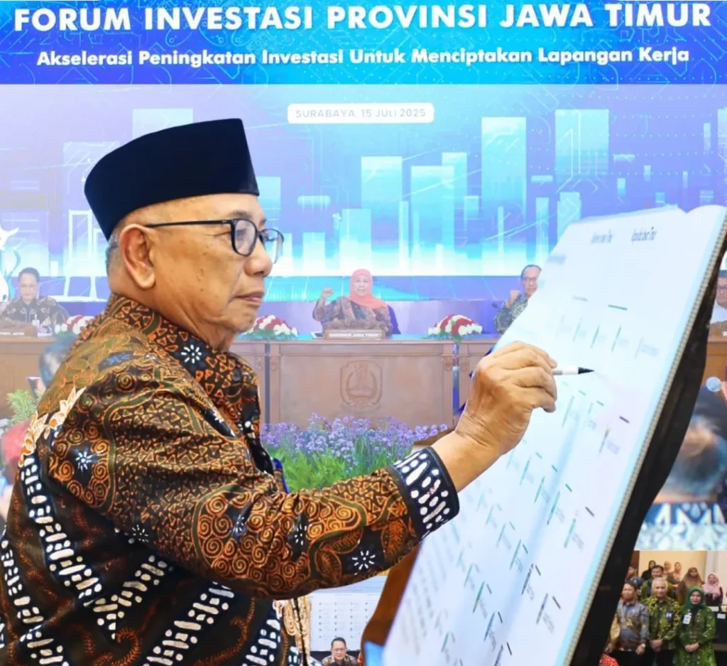 Bupati Blitar Drs. H. Rijanto, MM menghadiri acara High Level Meeting (HLM) Forum Investasi yang diselenggarakan di Gedung Negara Grahadi, Surabaya, pada Selasa, 15 Juli 2025. Kegiatan ini mengusung tema “Akselerasi Peningkatan Investasi untuk Menciptakan Lapangan Kerja”.