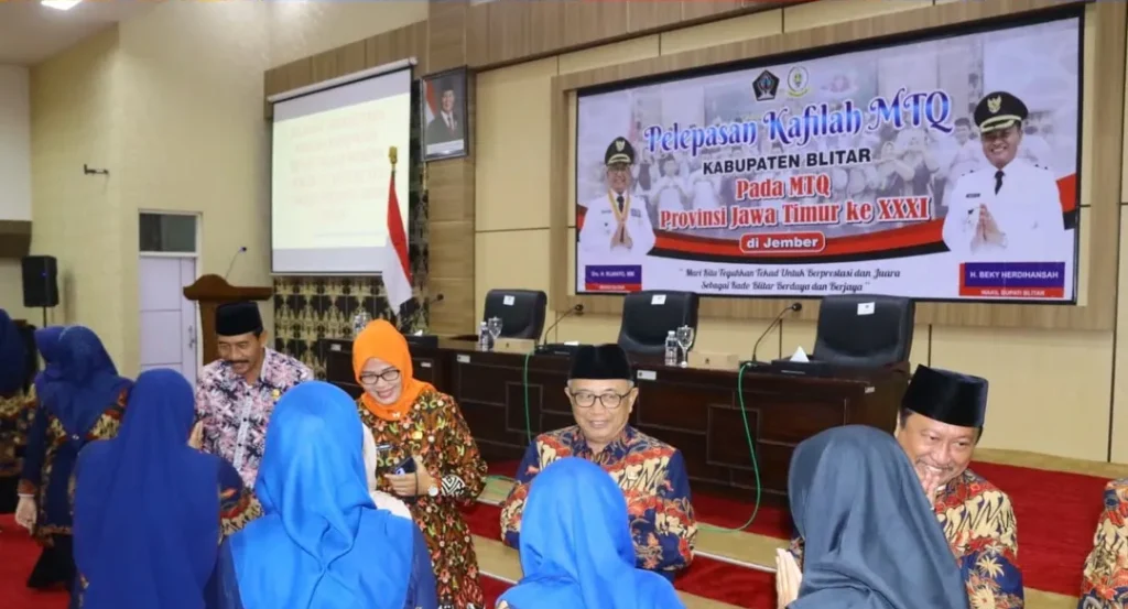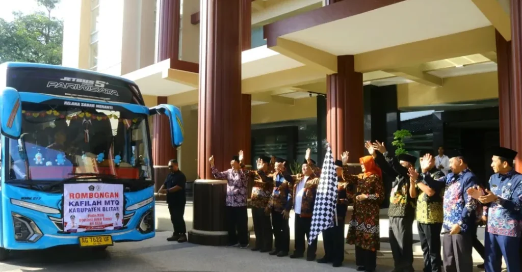 Bupati Blitar Drs. H. Rijanto, MM., bersama Pj. Sekretaris Daerah Khusna Lindarti sekaligus sebagai Ketua LPTQ Kabupaten Blitar, memberangkatkan Khafilah MTQ Kabupaten Blitar untuk mengikuti Musabaqah Tilawatil Qur’an (MTQ) Tingkat Provinsi Jawa Timur ke – XXXI Tahun 2025, dari Kantor Bupati Blitar Kanigoro, pada Jumat 12 September 2025.