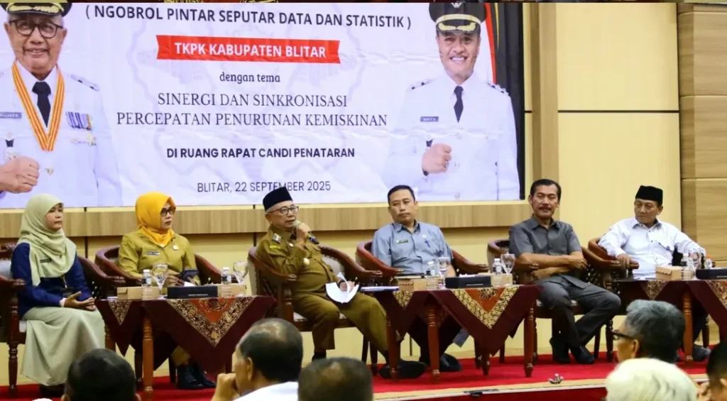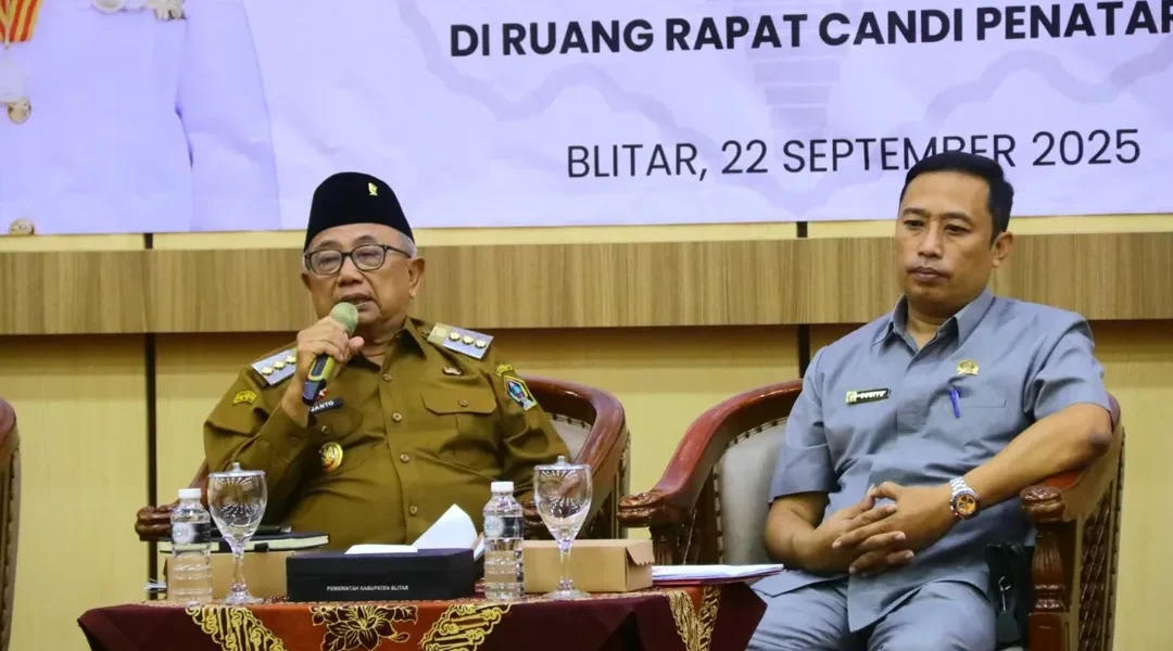 Bupati Blitar Drs. H. Rijanto, MM., bersama Pj. Sekretaris Daerah, menghadiri acara NGOPI ASIK (Ngobrol Pintar Seputar Data dan Statistik). Hadir pula Anggota DPRD, anggota TKPKD, Kepala BPS Kabupaten Blitar, serta diikuti oleh seluruh Perangkat Daerah Kabupaten Blitar , di Ruang Candi Penataran Kantor Bupati Blitar, Senin 22 September 2025.