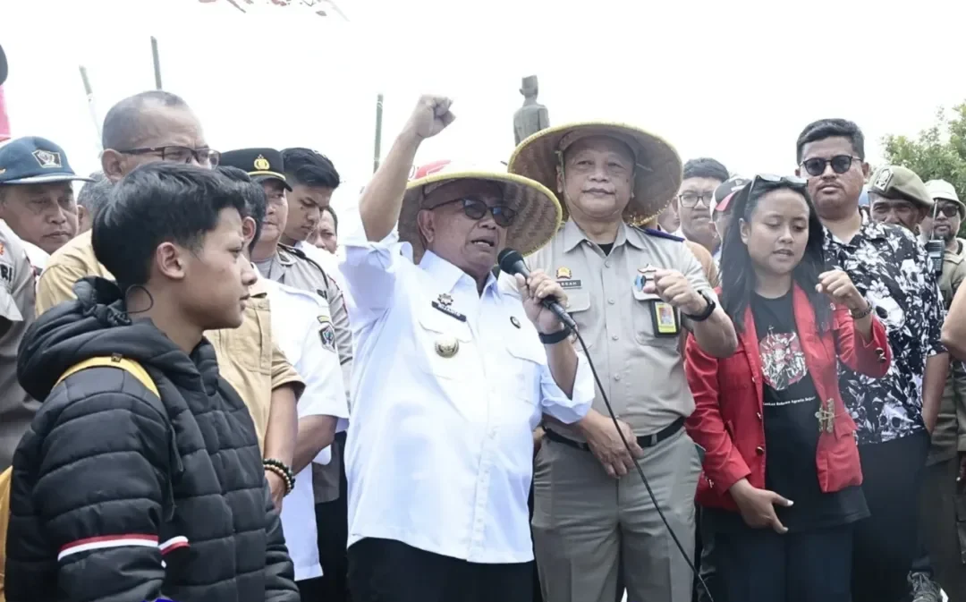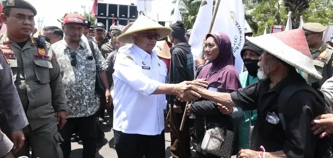 Bupati Blitar Drs. H. Rijanto, MM menerima secara langsung masa aksi unjuk rasa yang digelar di Kantor Bupati Blitar bertepatan dengan peringatan Hari Tani Nasional, Rabu (24/9/2025).