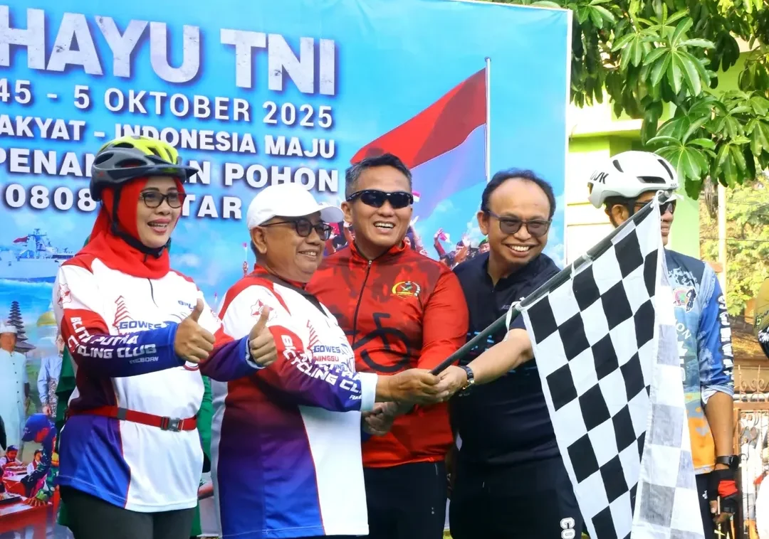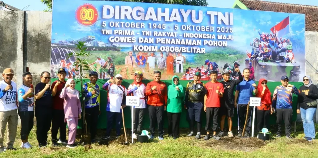 Dalam rangka HUT ke-80 Tentara Nasional Indonesia (TNI), Kodim 0808 menyelenggarakan Gowes dan Penanaman Pohon di Lapangan Desa Tegalasri Kecamatan Wlingi.