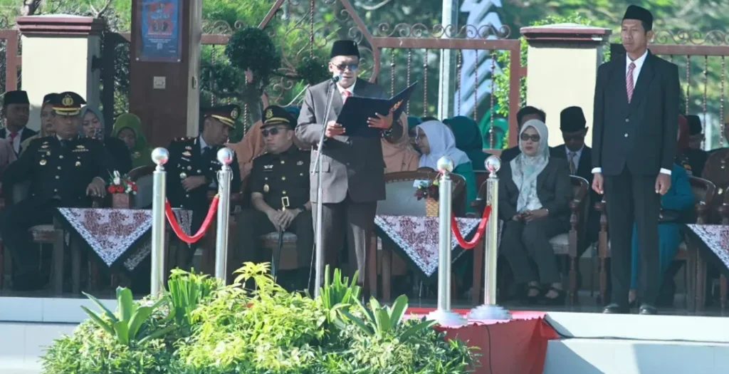 Bupati Blitar Drs. H. Rijanto, MM bertindak sebagai Inspektur Upacara pada Peringatan Hari Kesaktian Pancasila yang diselenggarakan di Alun-Alun Kanigoro pada Rabu, 1 Oktober 2025.