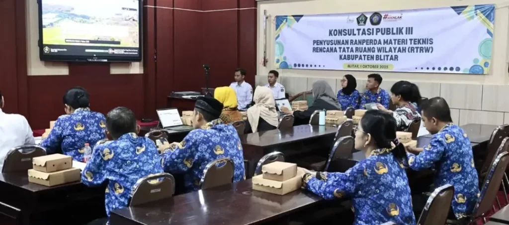 Bupati Blitar Drs. H. Rijanto, MM membuka Konsultasi Publik III Penyusunan Rancangan Peraturan Daerah (Ranperda) Materi Teknis Rencana Tata Ruang Wilayah (RTRW) Kabupaten Blitar di Ruang Perdana Kantor Pemkab Blitar, Rabu (1/10/2025).